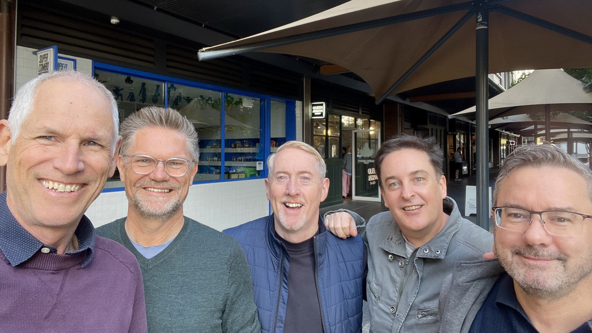 Lee, Pete, Coco the greyhound, and our good friend Steve, had arrived early, and they’d already done a reconnaissance of our options, choosing a regal coffee venue… the majestic sounding; Queen Amann bakery!